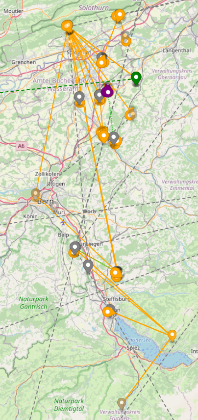 Der Berner Knoten ist am Schweizer AREDN-Netz angeschlossen. Die Anbindung erfolgt über eine 5.7GHz Richtfunkverbindung zum Weissenstein ( BENF < ----- > WSTN)